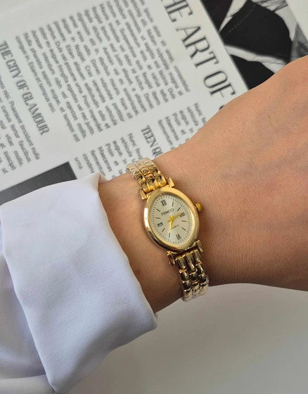 ساعت فنسی زنانه صفحه بیضی طلایی و نقره ای