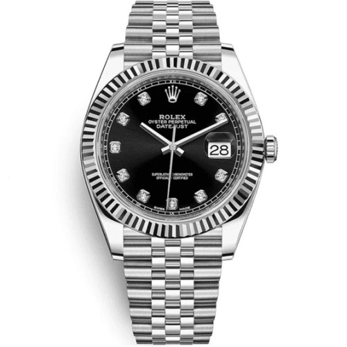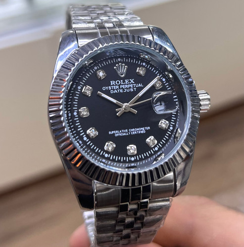 ساعت رولکس دیت جاست مردانه نقره ای صفحه مشکی با ایندکس نگین