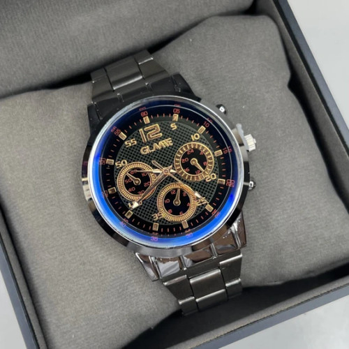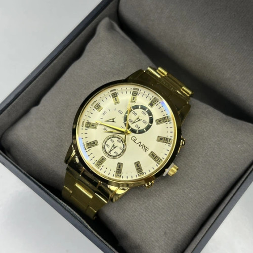 ساعت مچی مردانه GLAME بند فلزی فول طلایی سه موتوره