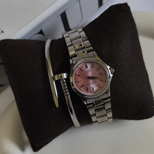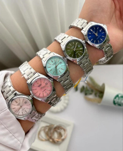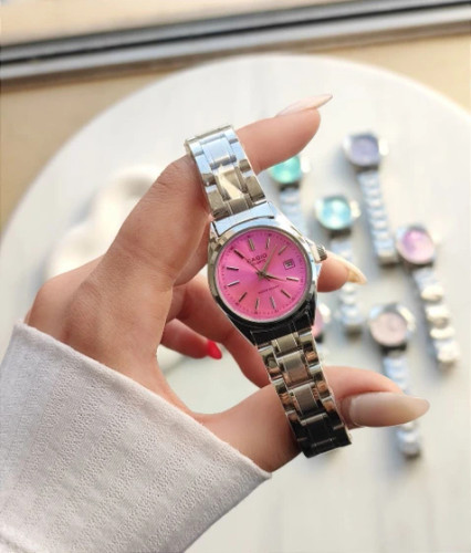 ساعت مچی کاسیو زنانه کیفیت عالی شیک و خاص کلاسیک - صفحه نقره ای بند دورنگ