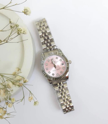 ساعت مچی زنانه رولکس مدل لاکچری بند استیل صفحه صورتی