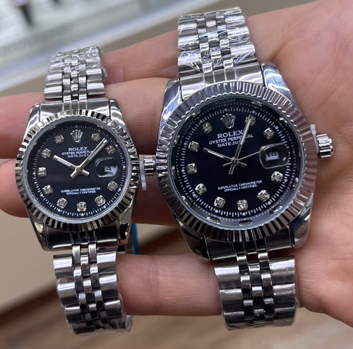 ساعت مچی ست زنانه و مردانه رولکس رنگ ثابت سیلور صفحه مشکی