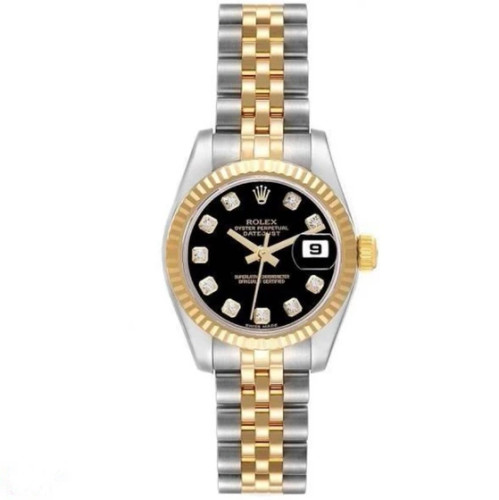 ساعت مچی زنانه رولکس دیت جاست صفحه مشکی استیل