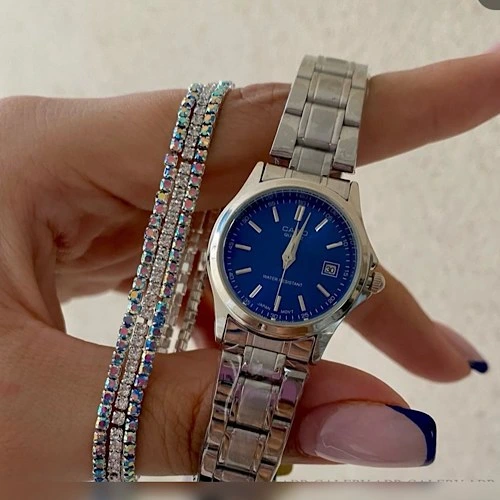 ساعت مچی زنانه کاسیو بند استیل صفحه آبی تیفانی