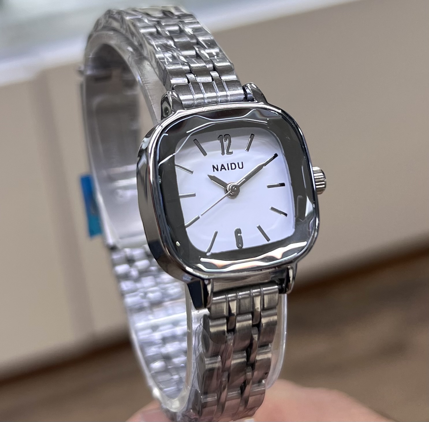 ساعت مچی زنانه نایدو مدل 9218 بند استیل مربعی سفید
