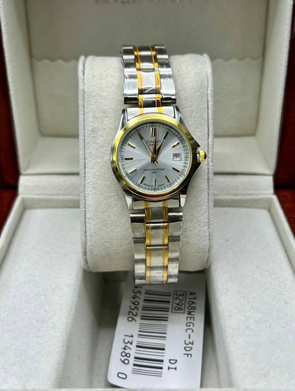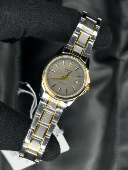 ساعت مچی کاسیو زنانه کیفیت عالی شیک و خاص کلاسیک - صفحه نقره ای بند دورنگ