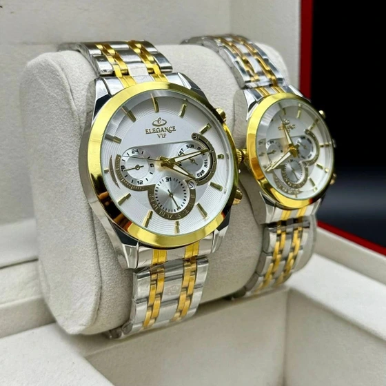 ست ساعت مچی زنانه و مردانه الگانس مدل E409 دو رنگ