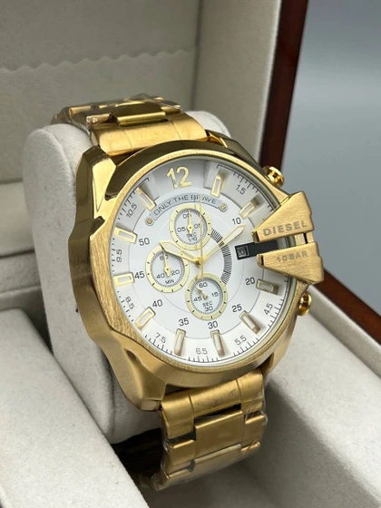 ساعت مچی مردانه دیزل مدل DZ3 طرح سه موتوره کرنوگراف طلایی
