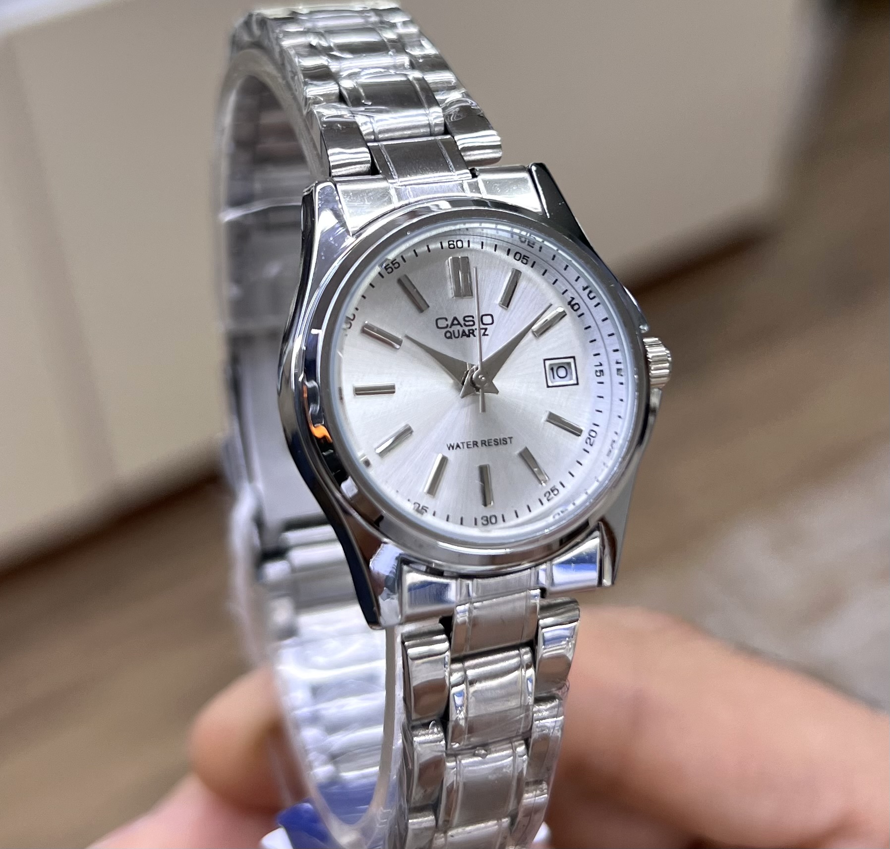 ساعت مچی زنانه کاسیو نقره ای با صفحه سفید